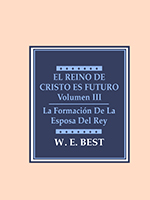 El Reino De Cristo Es Futuro — Vol. III (La Formación De La Esposa Del Rey)Este estudio explica las definiciones de Israel, la asamblea (iglesia), y el Reino; se examinan la fundación, el nacimiento, la naturaleza, el misterio y la unidad de la asamblea (iglesia) como la Novia de Cristo. Dios está preparando actualmente su asamblea, la iglesia, Su novia, para estar lista para el regreso de Cristo. Jesucristo asumió la naturaleza humana con el fin de llevar a Sí mismo en la realidad con su pueblo del pacto, tanto los judíos elegidos y los no-judíos elegidos. La edad actual es un tiempo de preparación para el pueblo de Dios. |